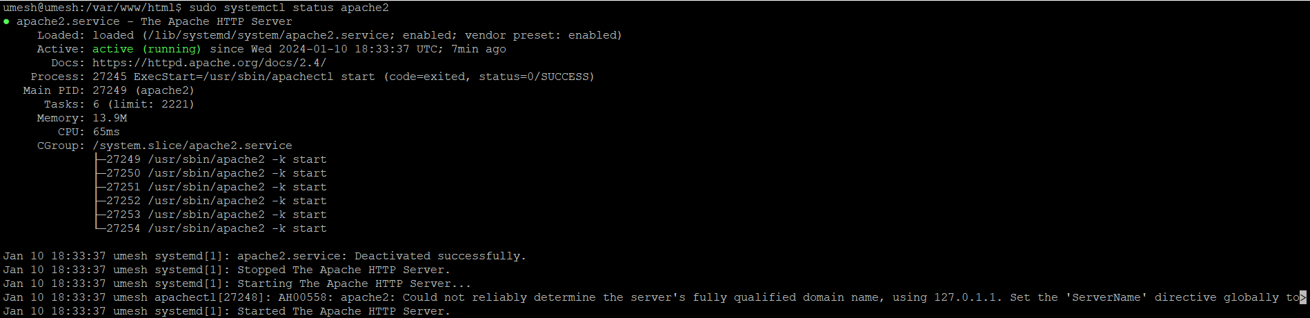 ubuntu@ubuntu:~$ sudo systemctl restart apache2