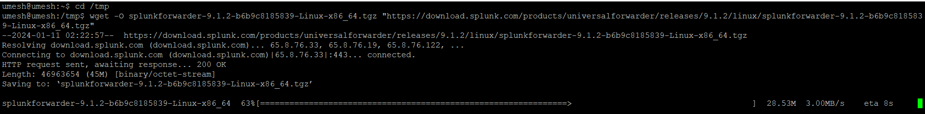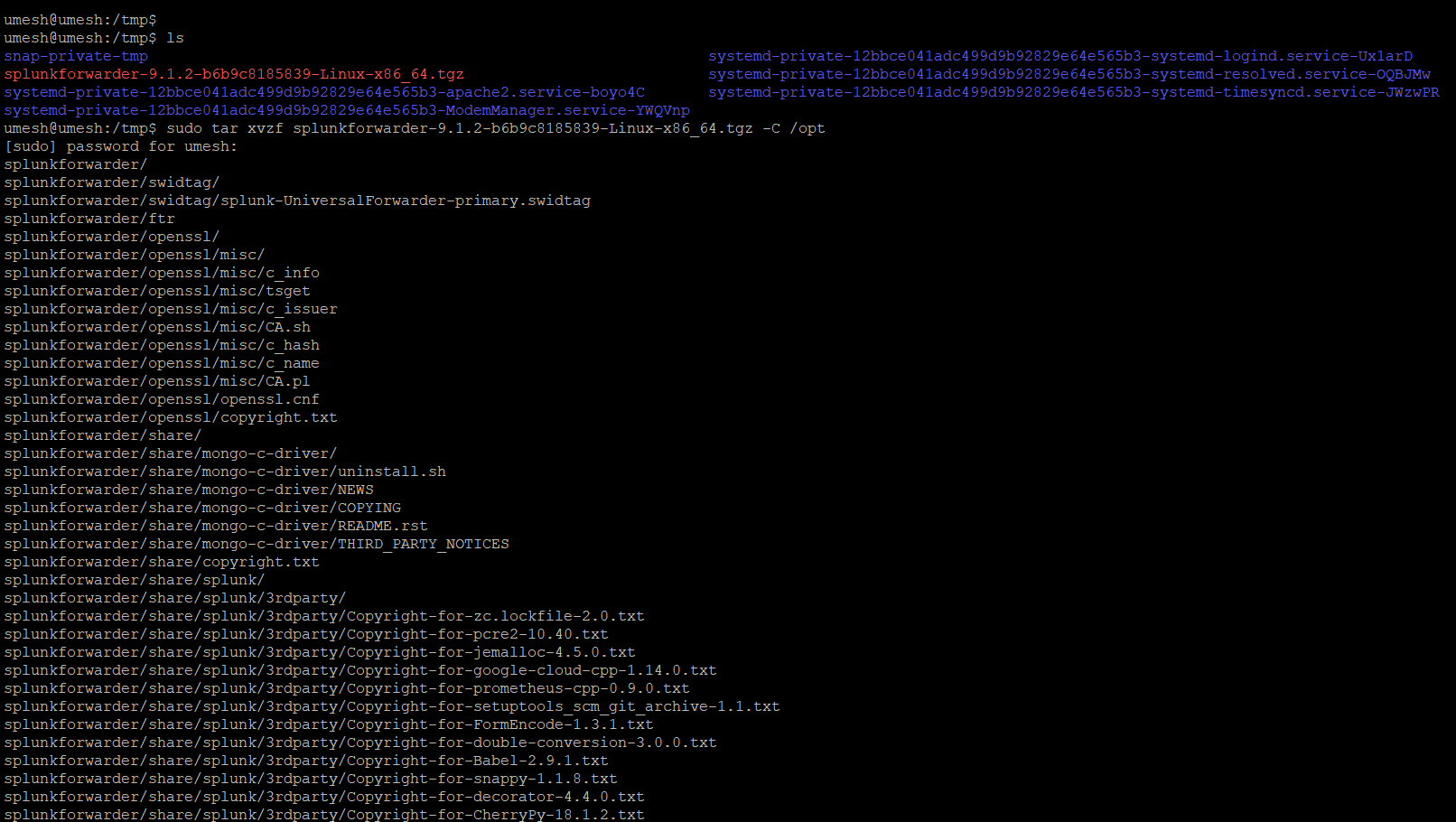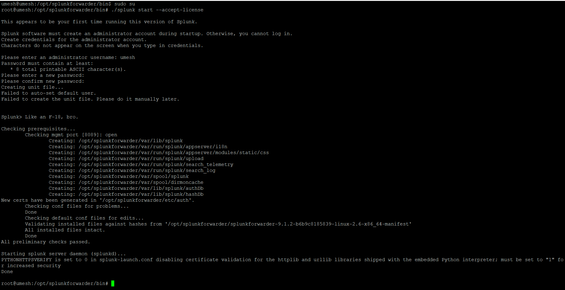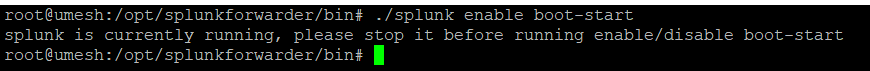ubuntu@ubuntu: ~$ sudo /opt/splunkforwarder/bin/splunk restart