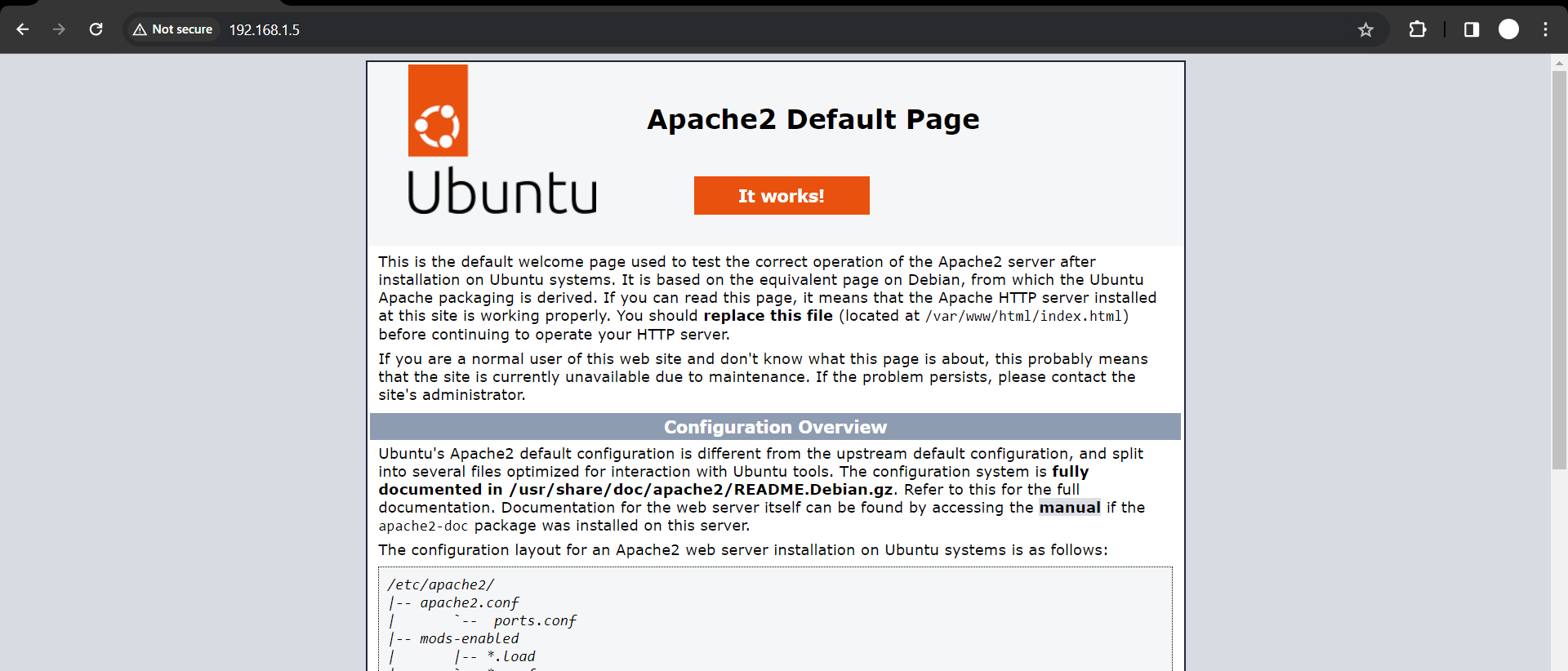 If the Apache2 web server is running, it will display the default Apache2 index page.